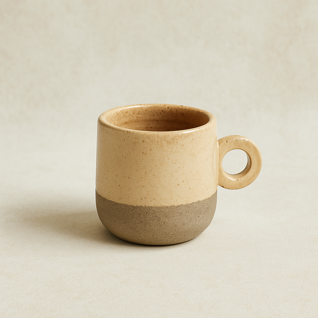 Αυτή η minimal και φωτεινή κούπα, σε φυσικές γήινες αποχρώσεις, είναι ιδανική για καθημερινή χρήση. Ο κυκλικός της σχεδιασμός προσφέρει εργονομία και αισθητική.