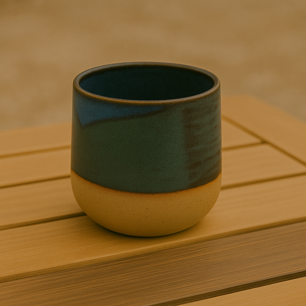 Το Κεραμικό ποτήρι – Mare είναι εμπνευσμένο από τα χρώματα της ελληνικής θάλασσας και τις αντανακλάσεις του ήλιου πάνω στο νερό. Συνδυάζει ένα εντυπωσιακό βαθύ μπλε υάλωμα με φυσικό, ανοιχτόχρωμο πηλό στη βάση, αποπνέοντας γαλήνη, κομψότητα και αυθεντικότητα.