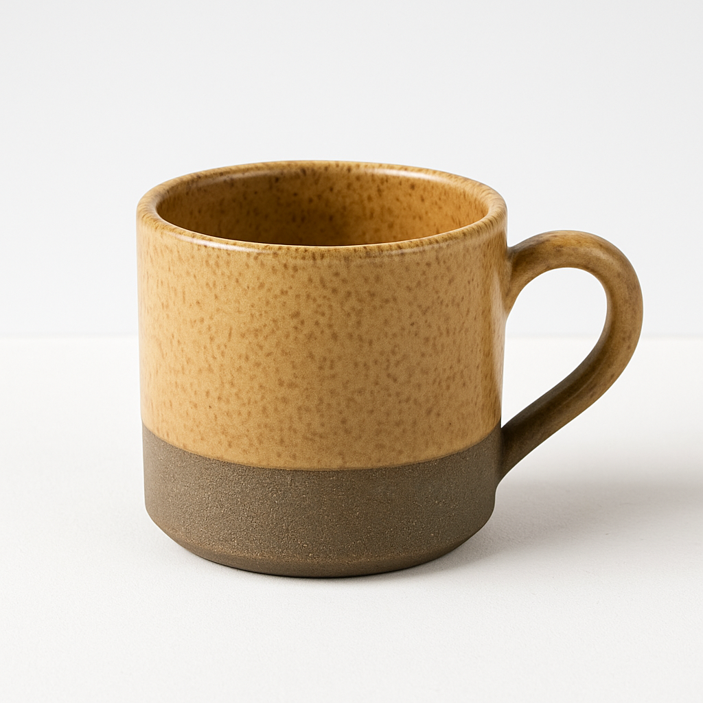 Το “Ήλιος” είναι ένα μικρό κεραμικό φλιτζάνι με χερούλι, εμπνευσμένο από τη θαλπωρή και τη φωτεινότητα του καλοκαιρινού ήλιου. Η επάνω ζώνη του έχει γυαλιστερό, χρυσαφί φινίρισμα με διακριτικές καφέ πινελιές, ενώ η βάση διατηρεί την φυσική υφή του stoneware πηλού, προσδίδοντας μια αυθεντική, γήινη αίσθηση.