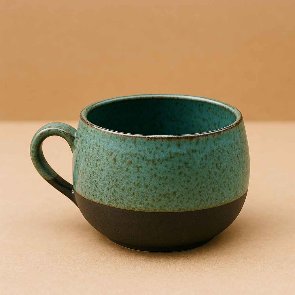 Η “Μέντα” είναι μια κομψή χειροποίητη κεραμική κούπα τύπου βαρελάκι, εμπνευσμένη από τις φυσικές αποχρώσεις των βοτάνων και τη δροσιά της φύσης. Το χαρακτηριστικό της στρογγυλό σχήμα και η εργονομική λαβή προσφέρουν άνεση και σταθερότητα σε κάθε χρήση, ενώ η εξωτερική της επιφάνεια εντυπωσιάζει με γυαλιστερό σμάλτο σε δροσερό τιρκουάζ-μέντα, διακοσμημένο με φυσικές σκούρες πιτσιλιές. Η ματ, σκούρα βάση από φυσικό πηλό δημιουργεί αρμονική αντίθεση και rustic αισθητική.